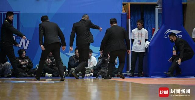 首节比赛开始后不久,一只橘色的小猫突然从通道窜出,在球场中央遛了一圈后,跑向场边,光滑的地板让急速奔跑的猫咪脚底打滑,这有趣的一幕顿时吸引了全场观众,场边的保安人员立即展开抓捕行动。就在这只猫咪被请出场外不久,第一节快结束时,另一只黑灰相间的猫咪又从另一个通道溜进了场地,这次吸引了更多保安人员进行“围捕”,引得观众欢笑不断。